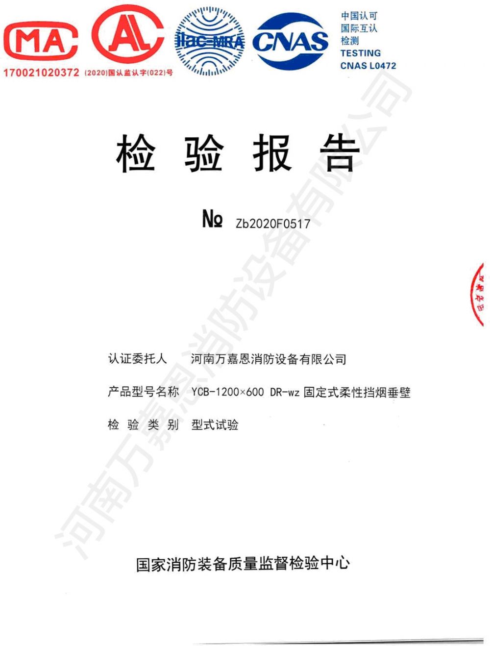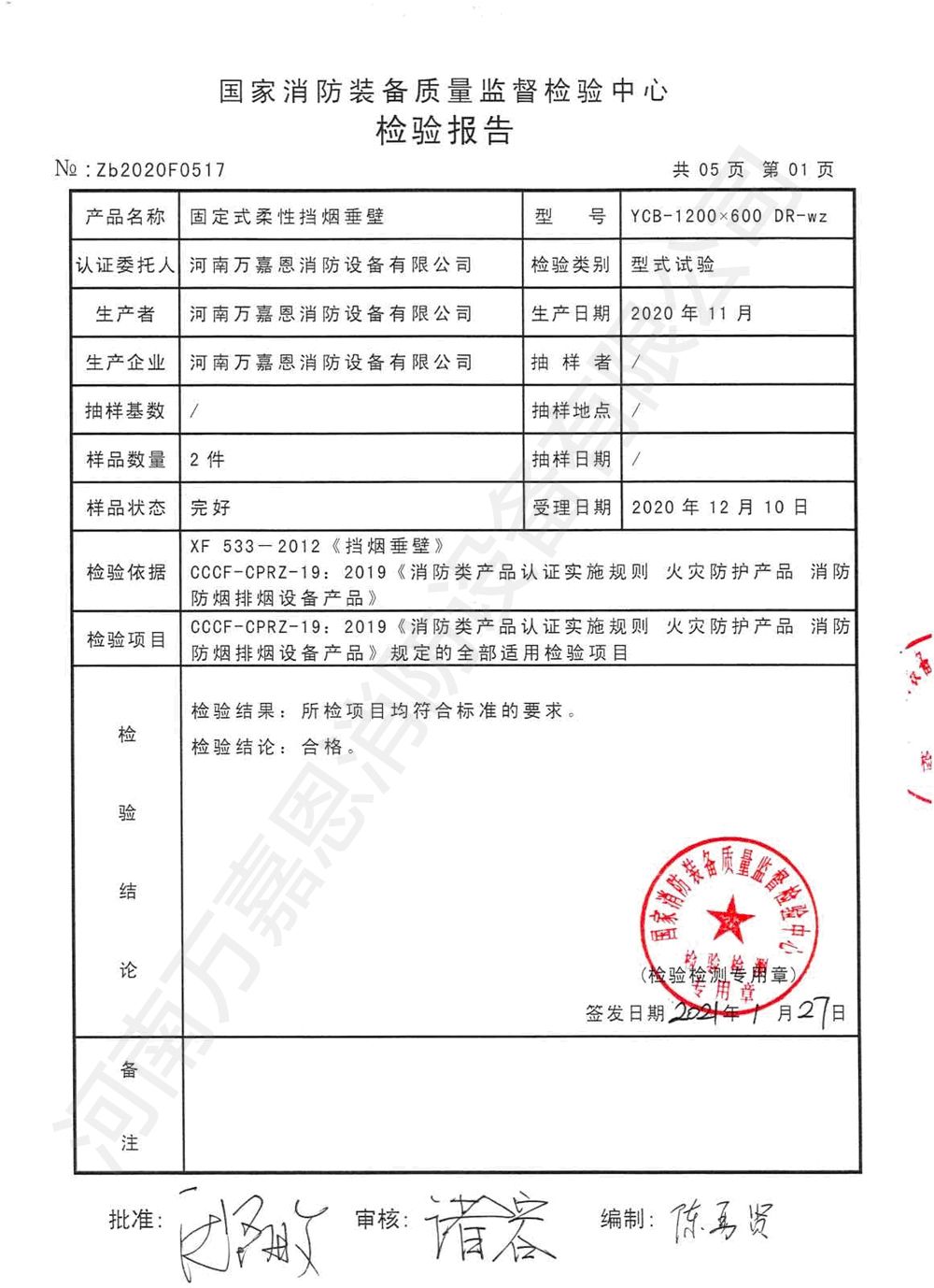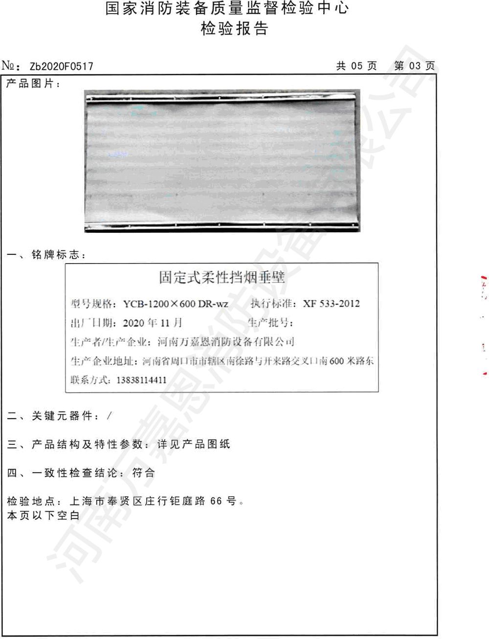 固定式柔性挡烟垂壁检验报告